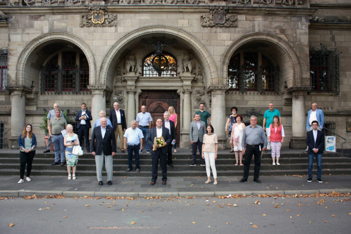 Nach der konstituierenden Sitzung der neuen CDU-Ratsfraktion versammelten sich die Ratsmitglieder zu einem Gruppenfoto vor dem Rathausportal. Der neuen CDU-Ratsfraktion 2020-2025 gehören an: Sevket Avci, Nicolas Back, Gertrud Bettges, Ralf Jörg Brotzki, Eva Büttgenbach, Cäcilia Casian, Sonja Dietl, Peter Griebeling, Frank Heidenreich, Peter Ibe, Elmar Klein, Sylvia Linn, Ulrich Lüger, Thomas Mahlberg, Klaus Mönnicks, Volker Mosblech, Dennis Schleß, Iris Seligman-Pfennings, Udo Steinke, Thomas Susen, Sigrid Volk-Cuypers und Josef Wörmann.